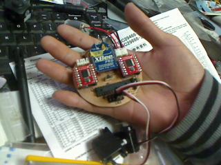 今の所、Xbee to Xbeeの通信と小型のラジコンサーボの動作確認できたので残りは4個のモータ駆動確認ですがとりあえずはサーボを自在にコントローラで自在に操る事が優先だよね
